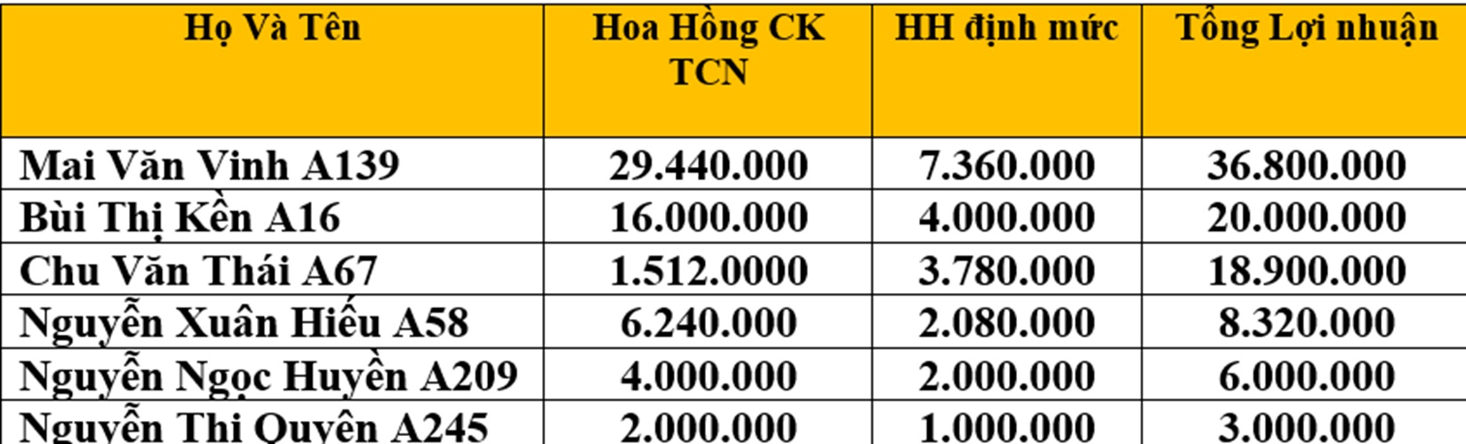III. HOA HỒNG ĐỊNH MỨC BÁN MÁY VÀ LỢI NHUẬN ĐƯỢC NHẬN TỪ TỔNG CÔNG TY