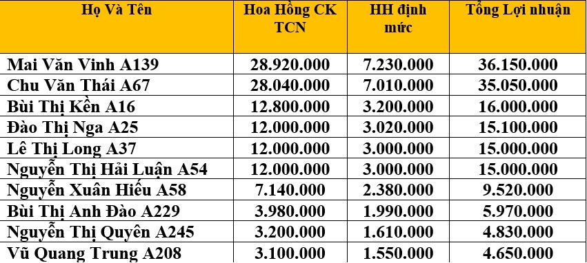 - Giải nhất: Nguyễn Xuân Hiếu – Trưởng chi nhánh A58 ( TPHCM ) 11 thành viên (thưởng 10 lọ dầu => 1.500.000 đ).