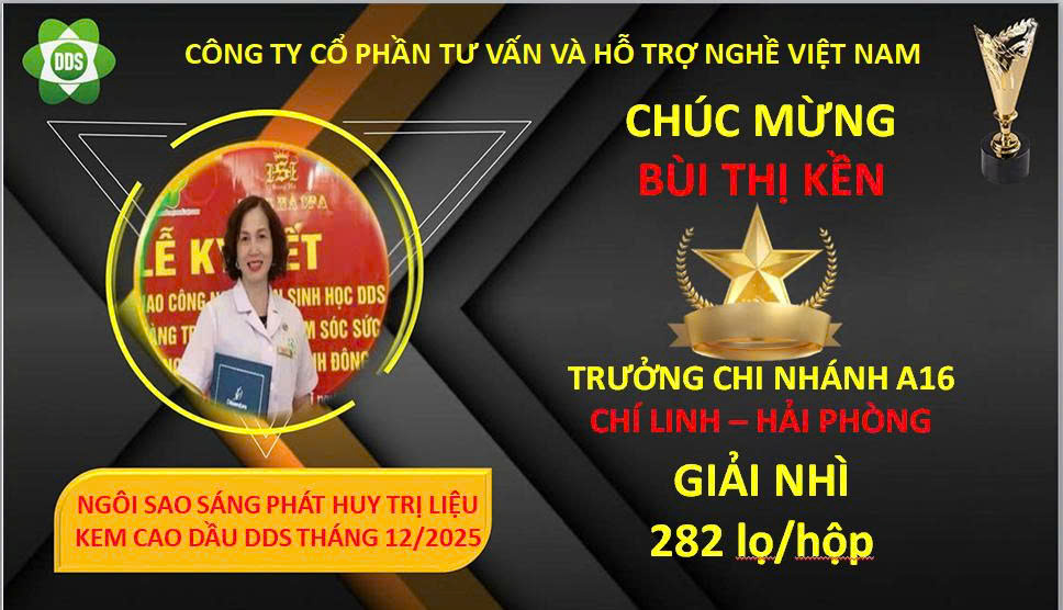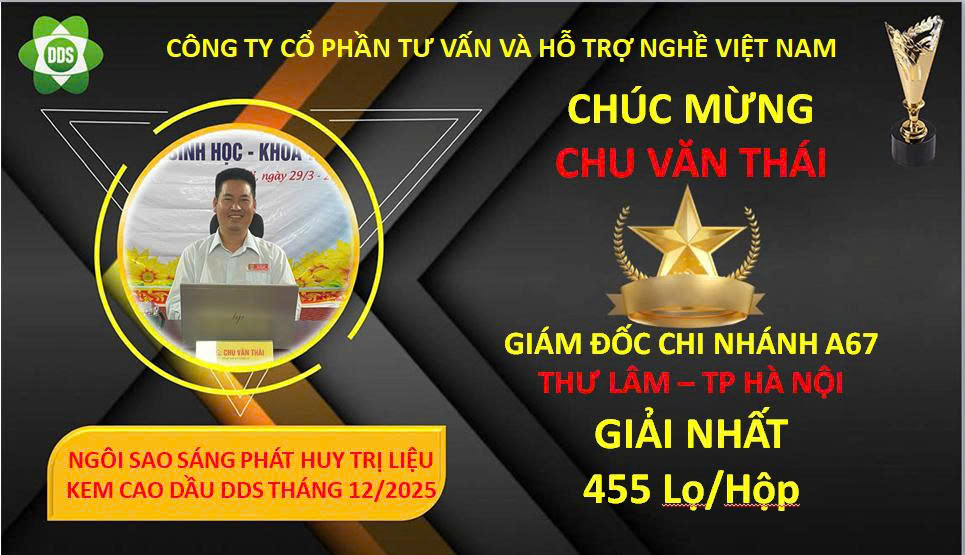 - Giải nhất: Chu Văn Thái - Giám Đốc Chi Nhánh A67 (Thư Lâm – TP Hà Nội) 455 lọ / hộp ( thưởng 10 lọ dầu => 1.500.000 đ)