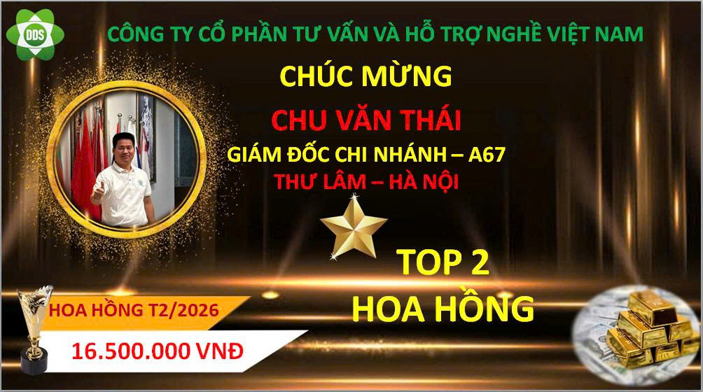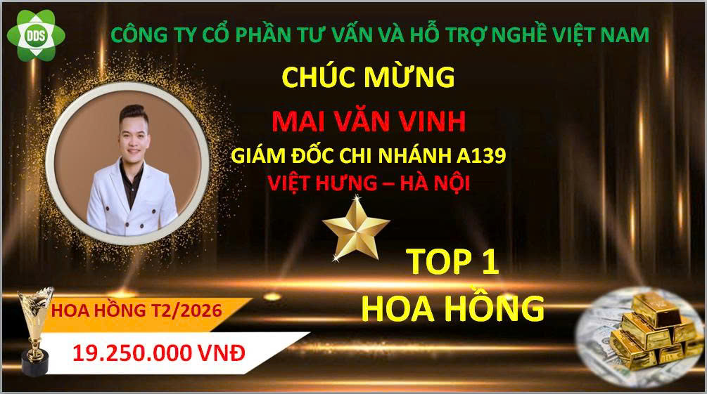 Trong tháng 2 /2026, đã có trưởng chi nhánh nhận được hoa hồng, tiền thưởng cao nhất từ Tổng Công ty cổ phần tư vấn và hỗ trợ nghề Việt Nam. Công ty Xin biểu dương và chúc mừng các anh, chị!