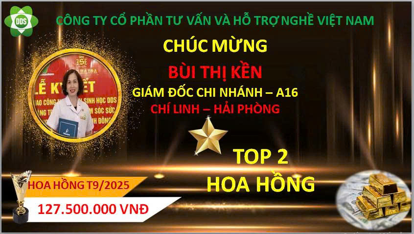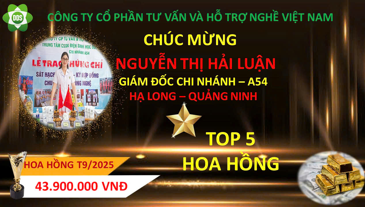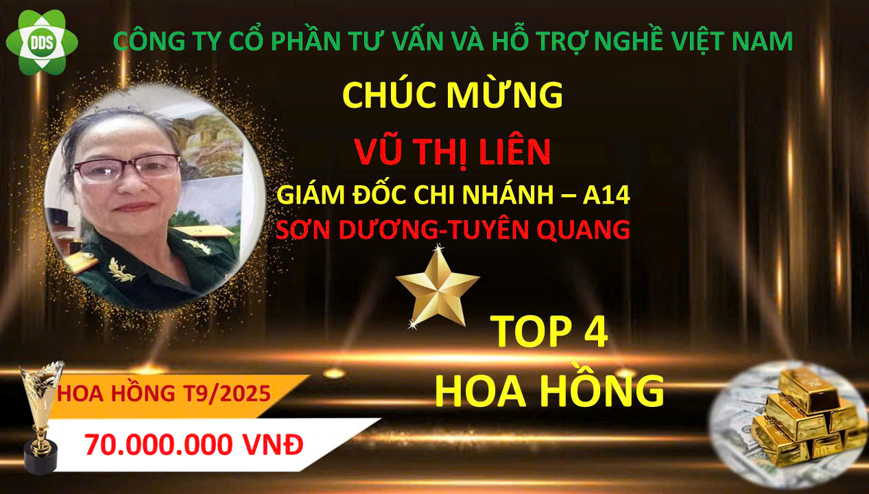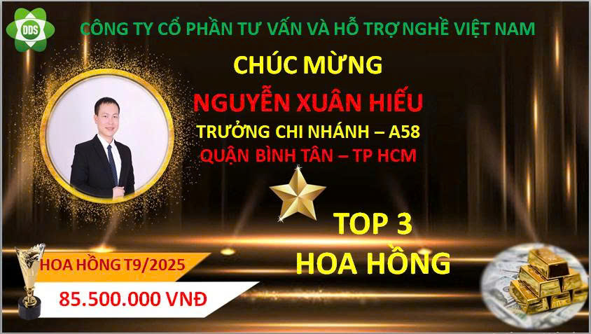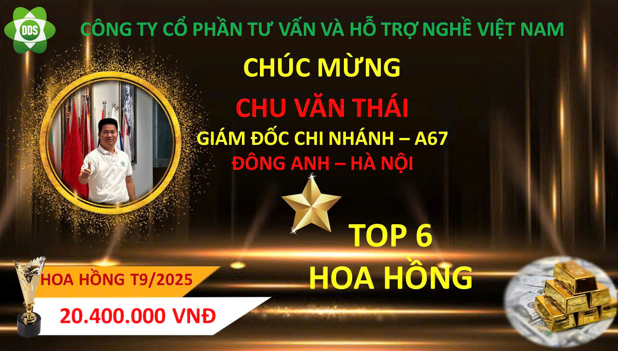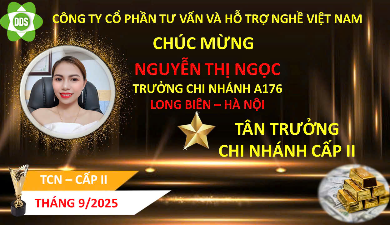 Trong tháng 9 /2025, đã có 1 Trưởng Chi nhánh lên Trưởng Chi Nhánh cấp 2 và 2 thành viên lên trưởng chi nhánh đứng trong hàng ngũ lãnh đạo của công ty và 6 trưởng chi nhánh nhận được hoa hồng, tiền thưởng cao nhất từ Tổng Công ty cổ phần tư vấn và hỗ trợ nghề Việt Nam. Công ty Xin biểu dương và chúc mừng các anh, chị!